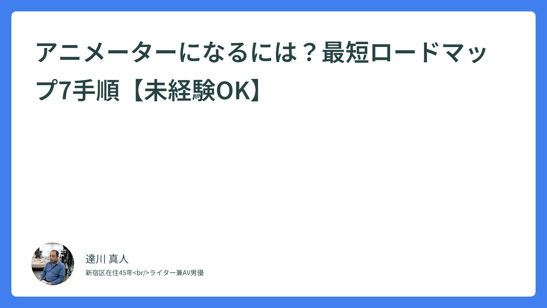 この記事は、「アニメーターになりたいけれど、何から始めればいいかわからない」「未経験から就職できる?」「収入や働き方の現実も知った上で目指したい」という人に向けて、最短でプロに近づくための7手順ロードマップをまとめたガイドです。